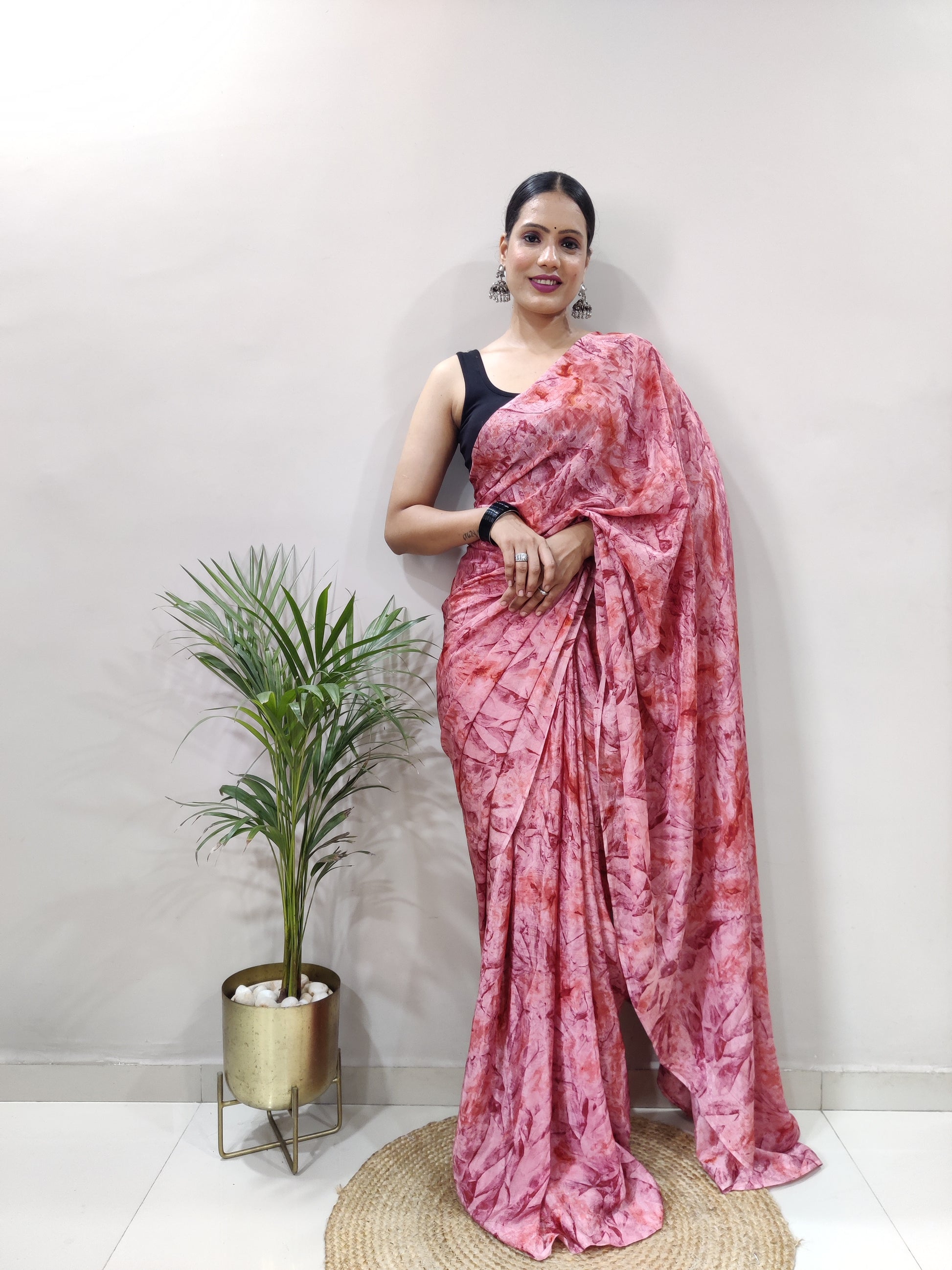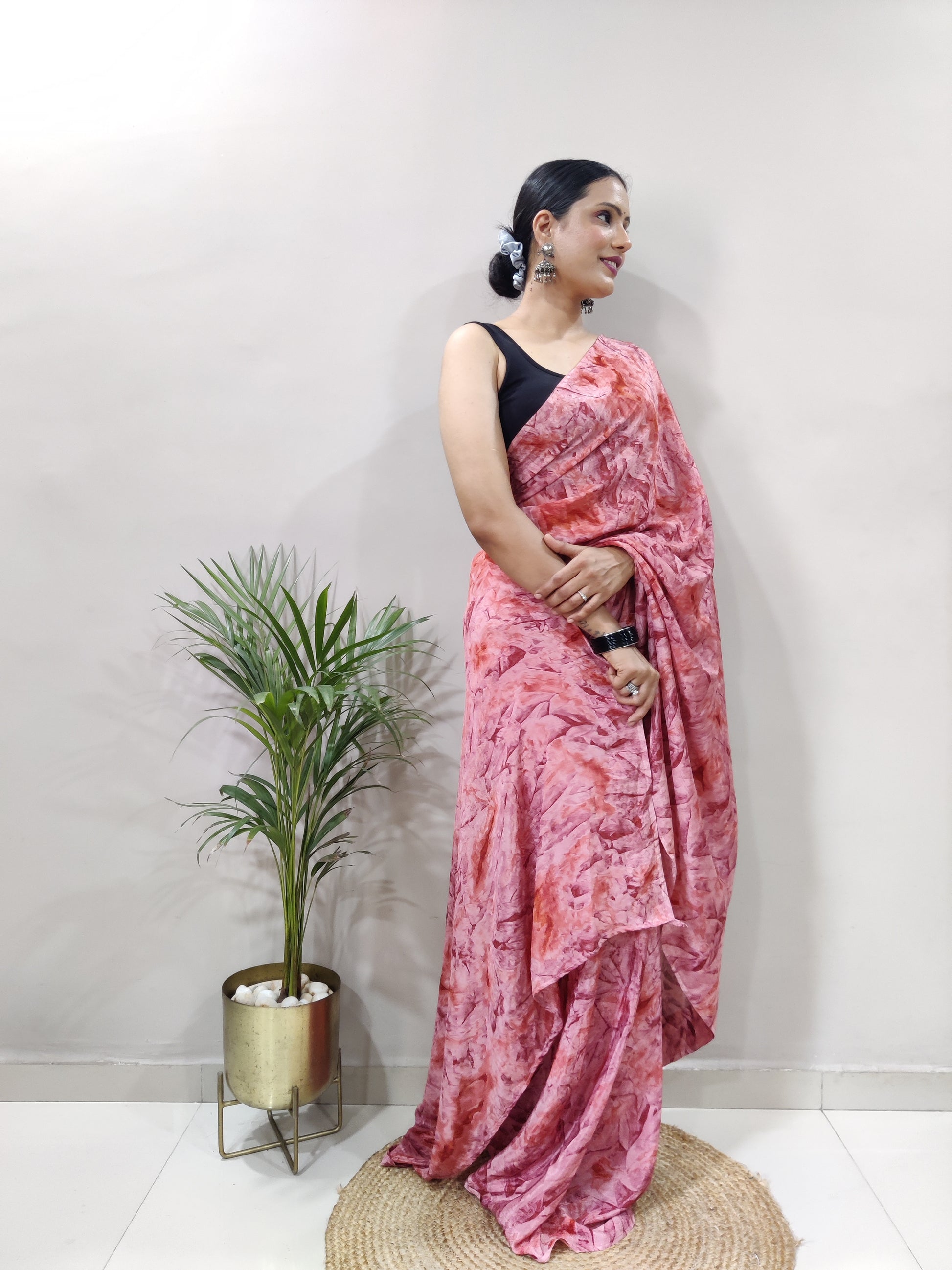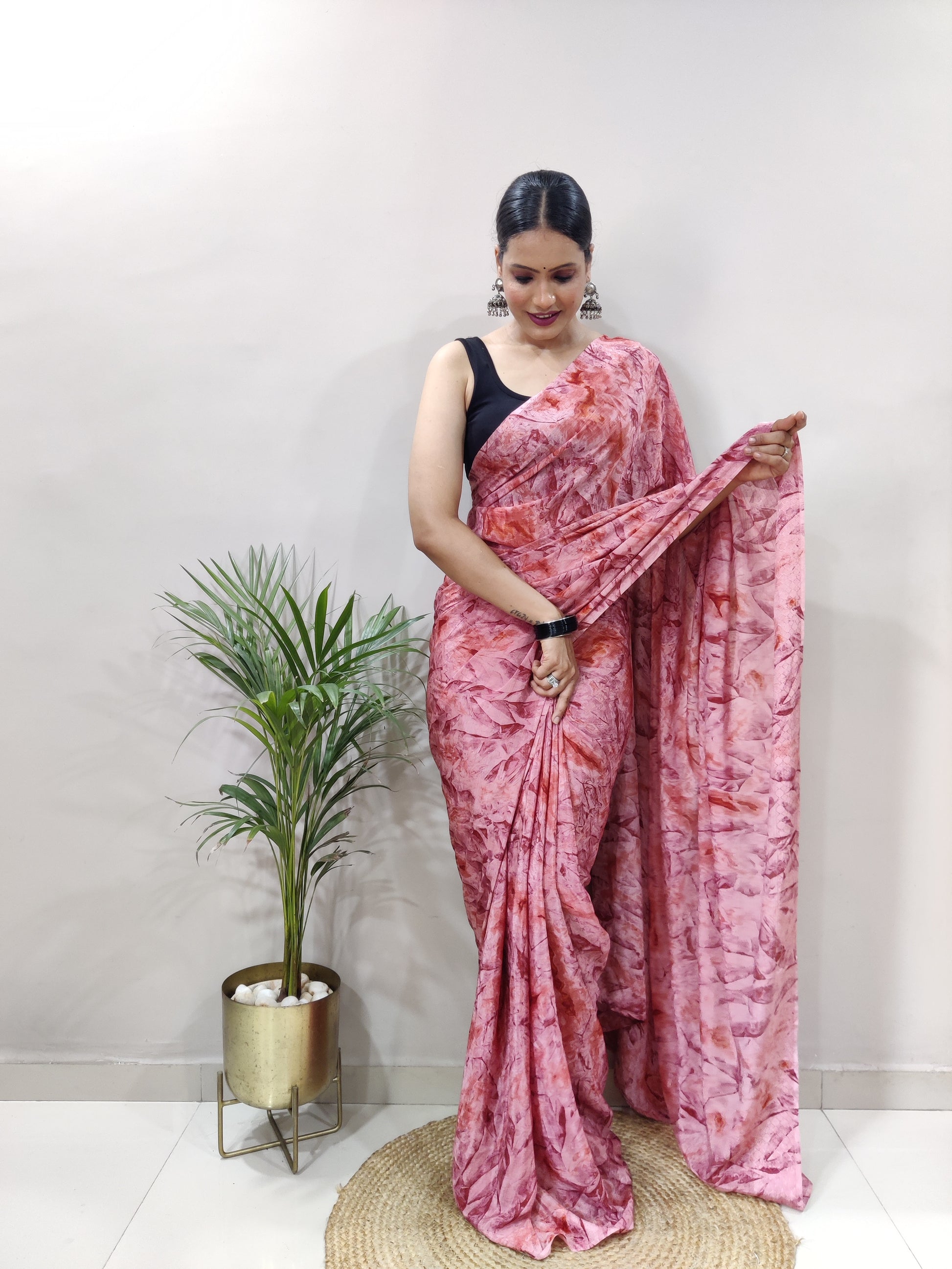 1-min Ready To Wear Saree In Premium Chinon Silk Fabric