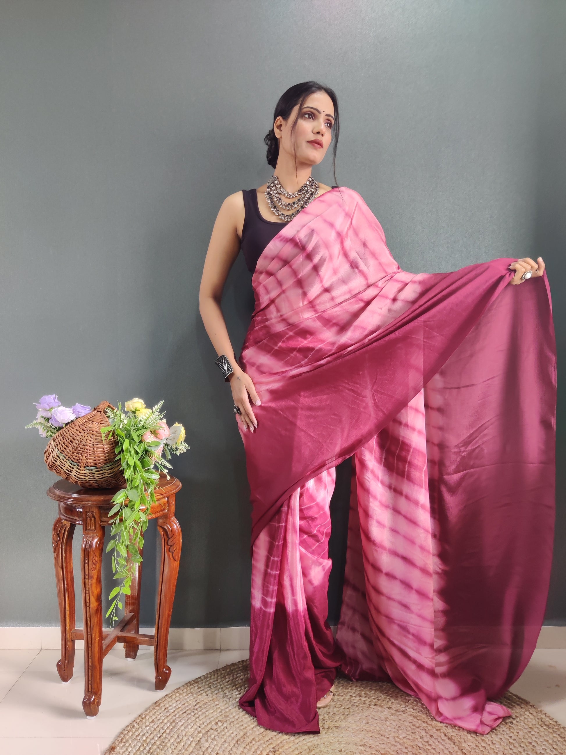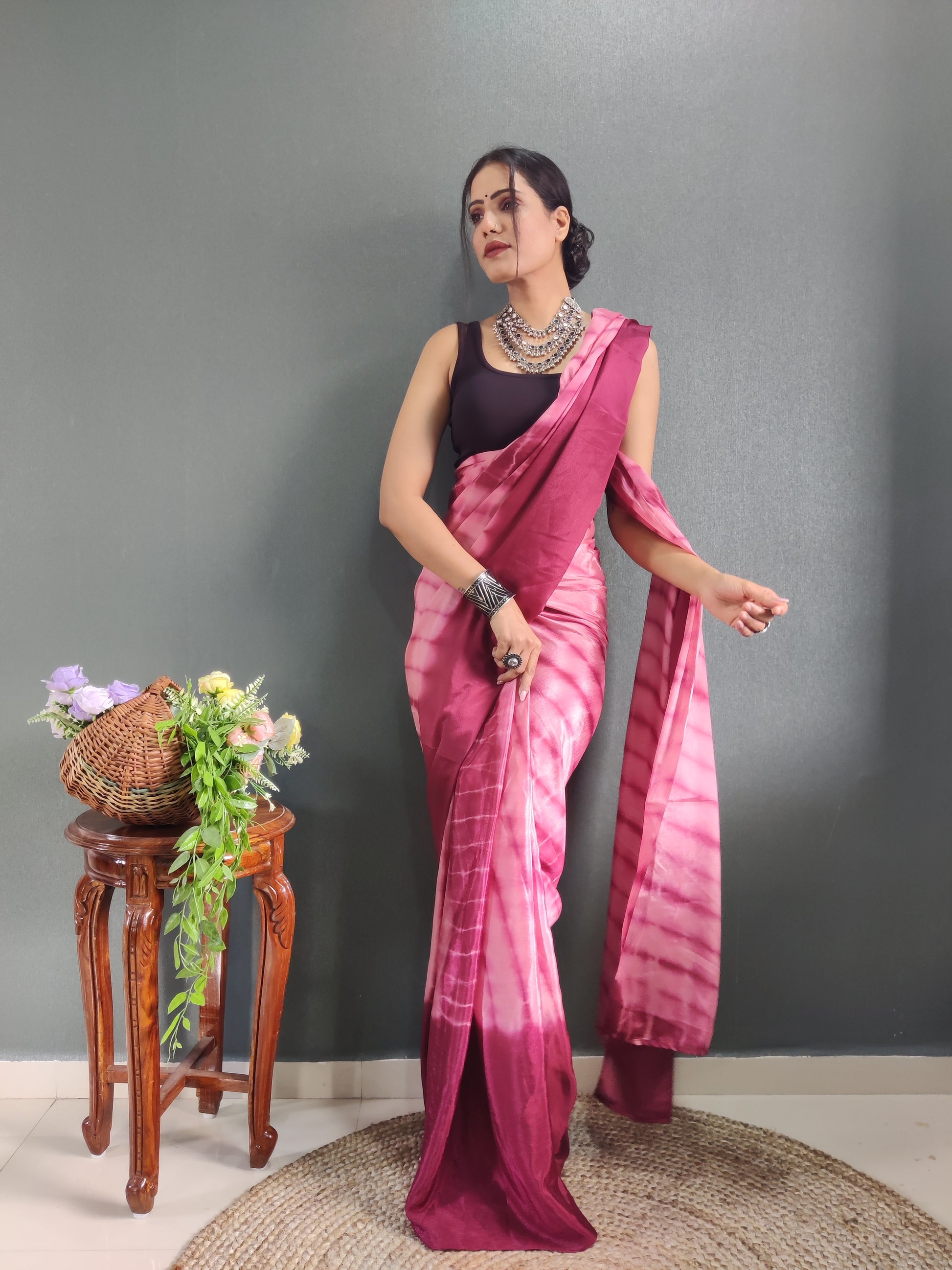1-min Ready To Wear Saree In Premium Chinon Silk Fabric