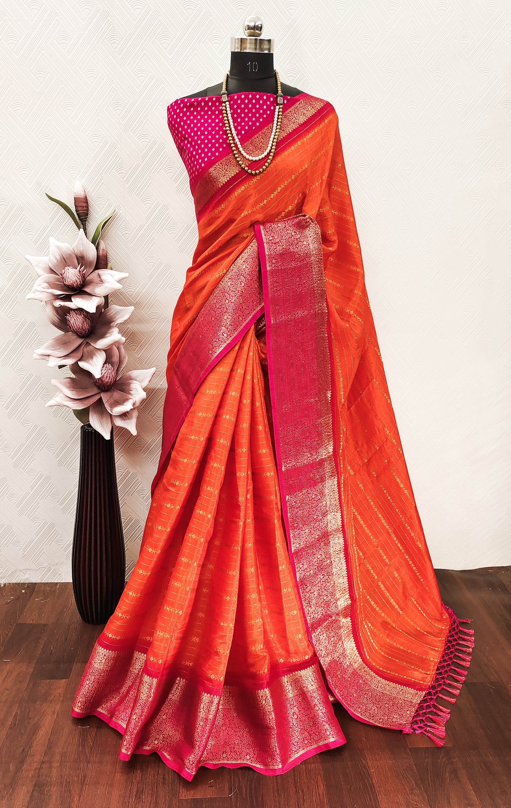 Aesthetic VIsocse Dola Silk Saree With Zari Weaving