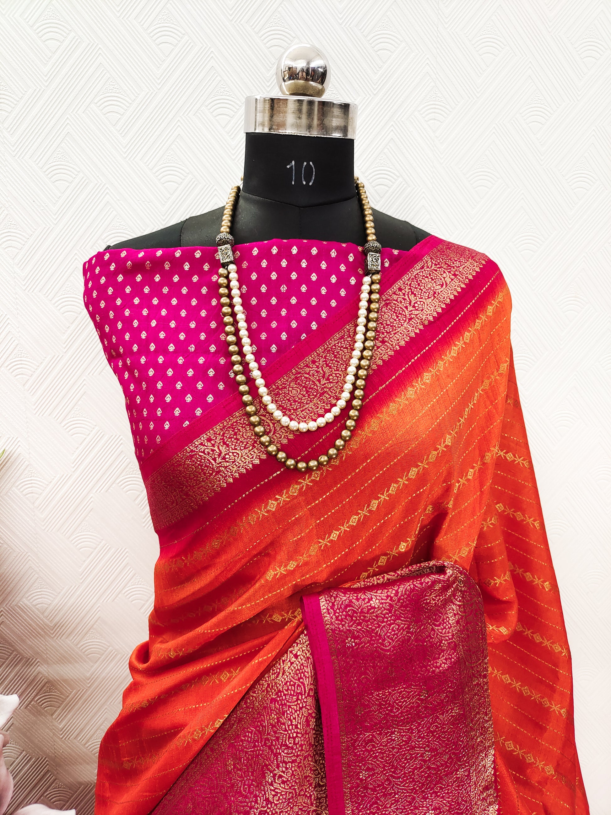 Most Trending Viral Viscose Georgette Festival Rust Color Saree With Satin Border