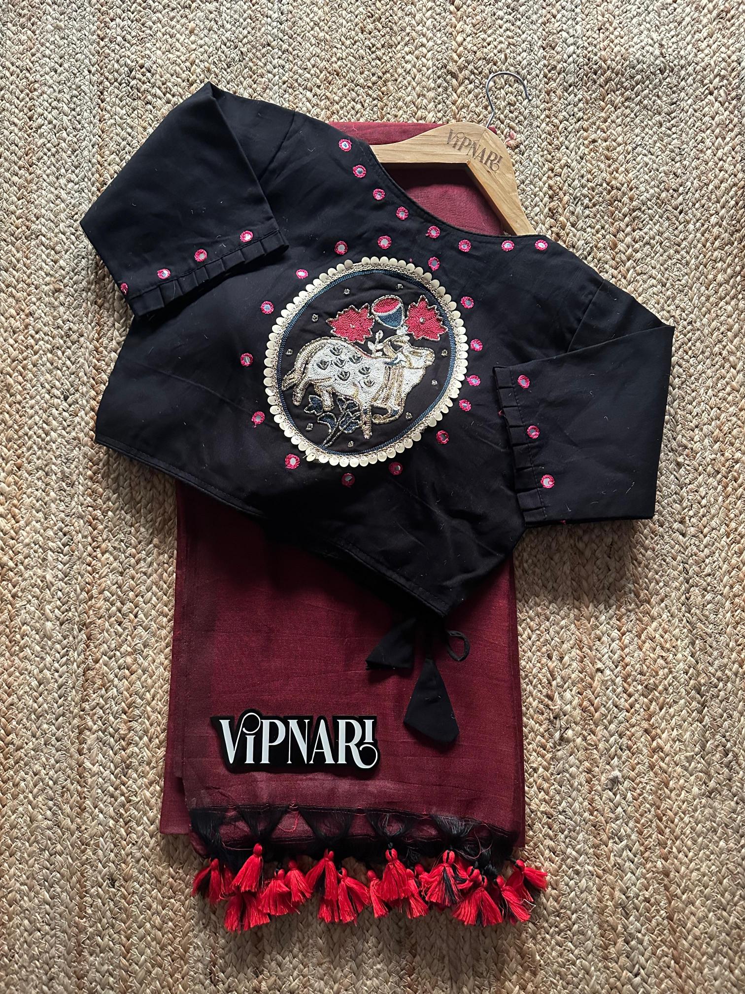 Most Elegant Handloom Cotton Saree With Stitched Designer Handwork Blouse