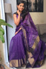 Most Trending Viral Viscose Silk Dark Purple Saree With Weaving Zari Border