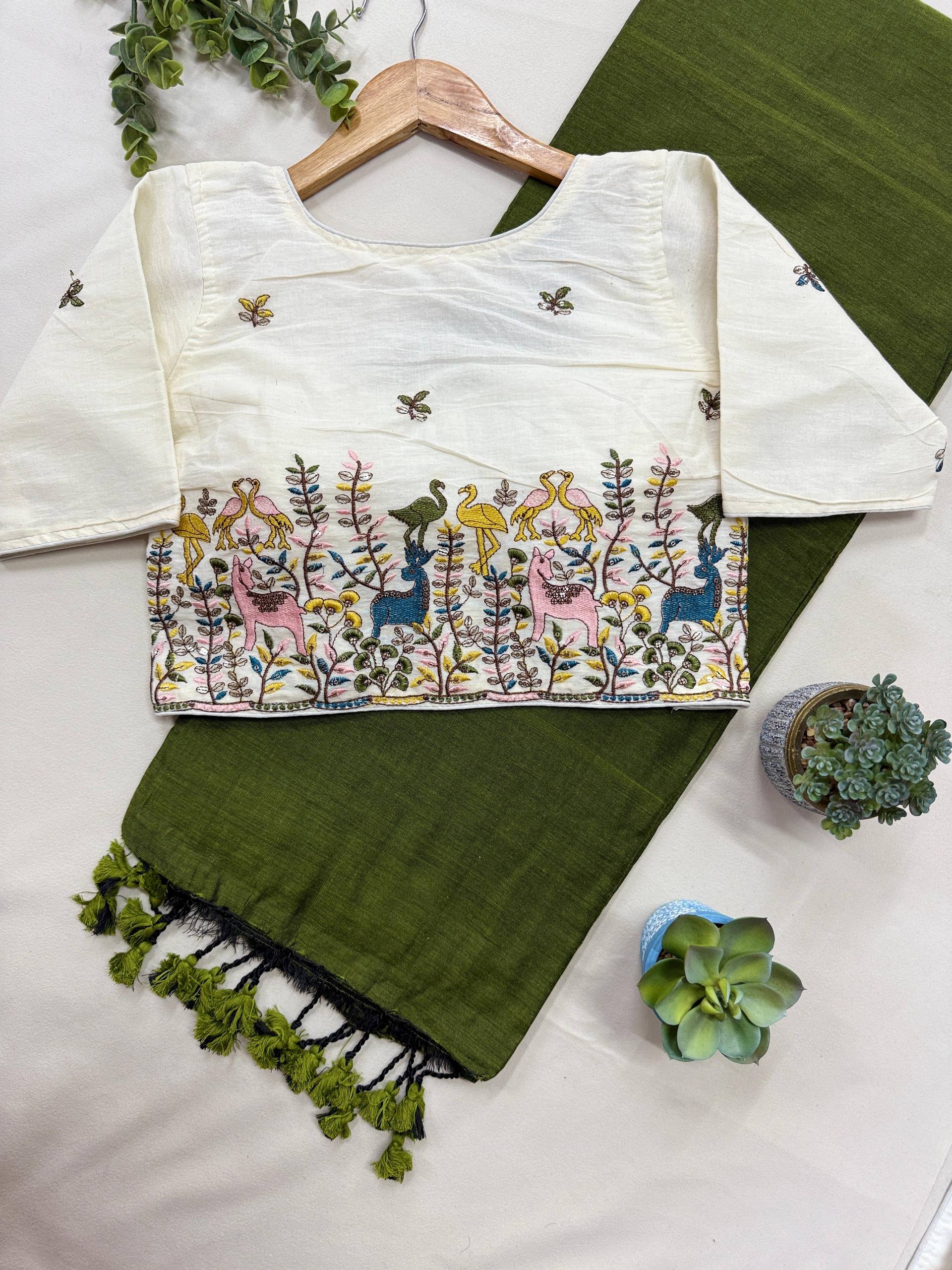 Pure Handloom Cotton Saree With Stitched Handwork Blouse