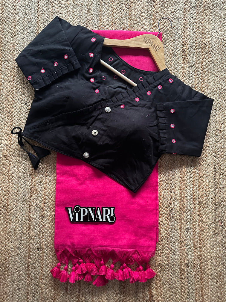 Pure Khadi Cotton Saree With Stitched Handwork Blouse