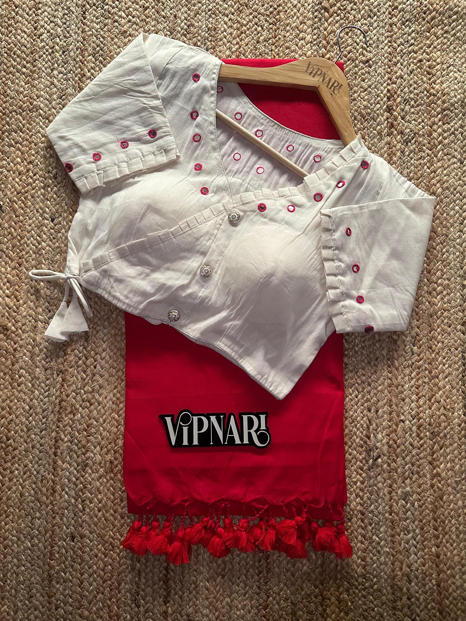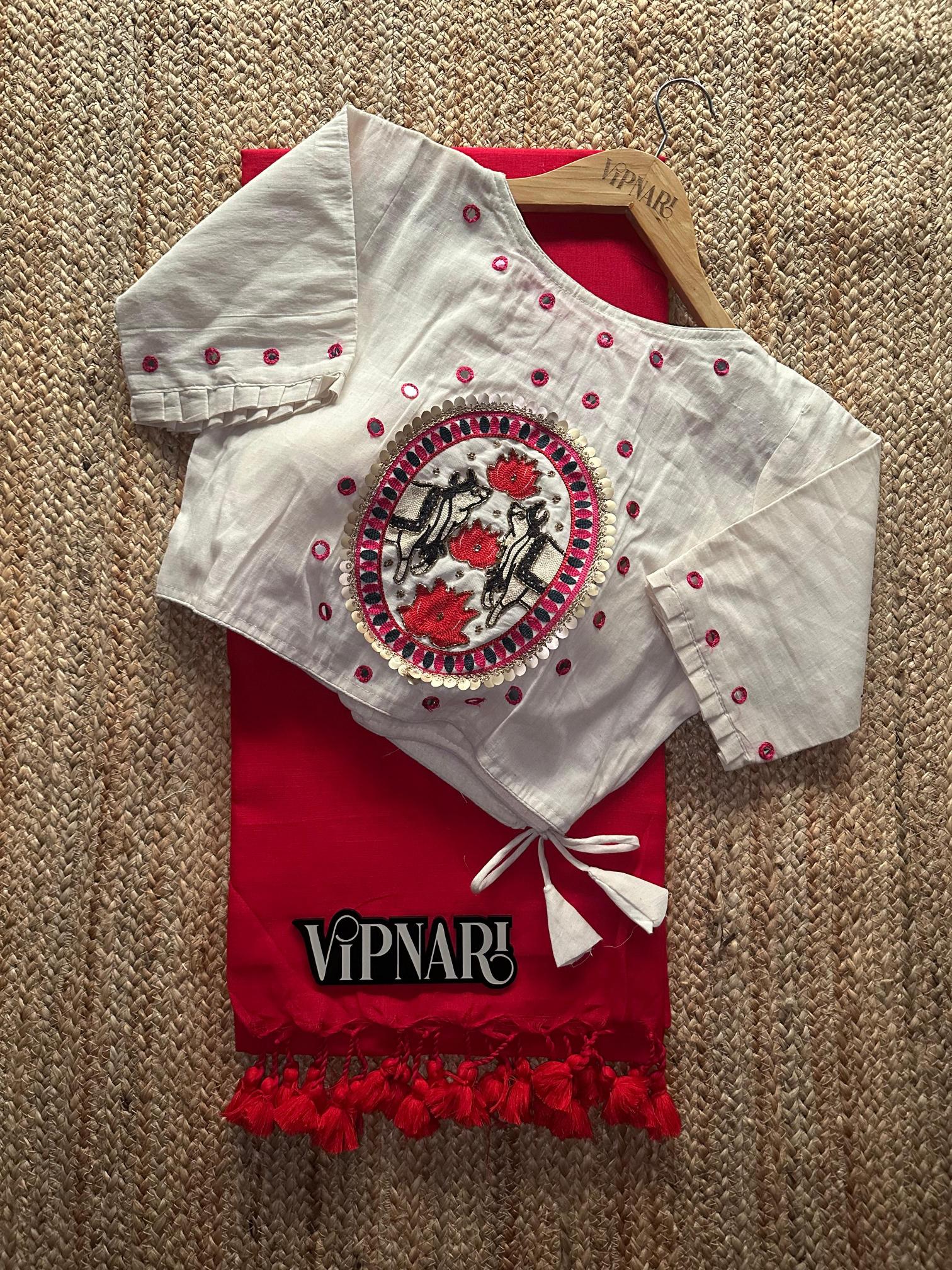 Traditional Handloom Cotton Saree With Stitched Designer Handwork Blouse