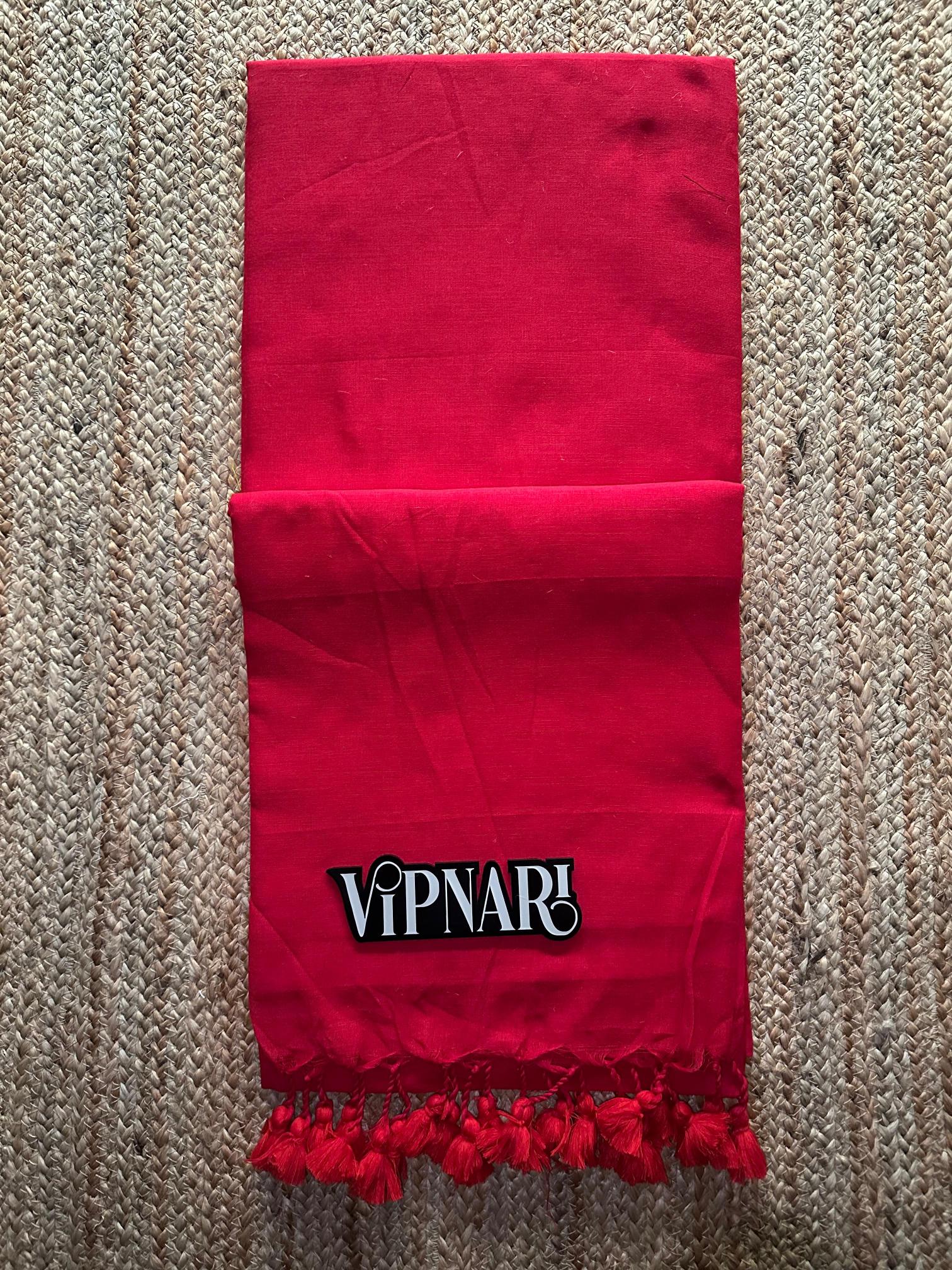 Most Trending Viral Pure Viscose Georgette Festival Red Saree With Satin Border