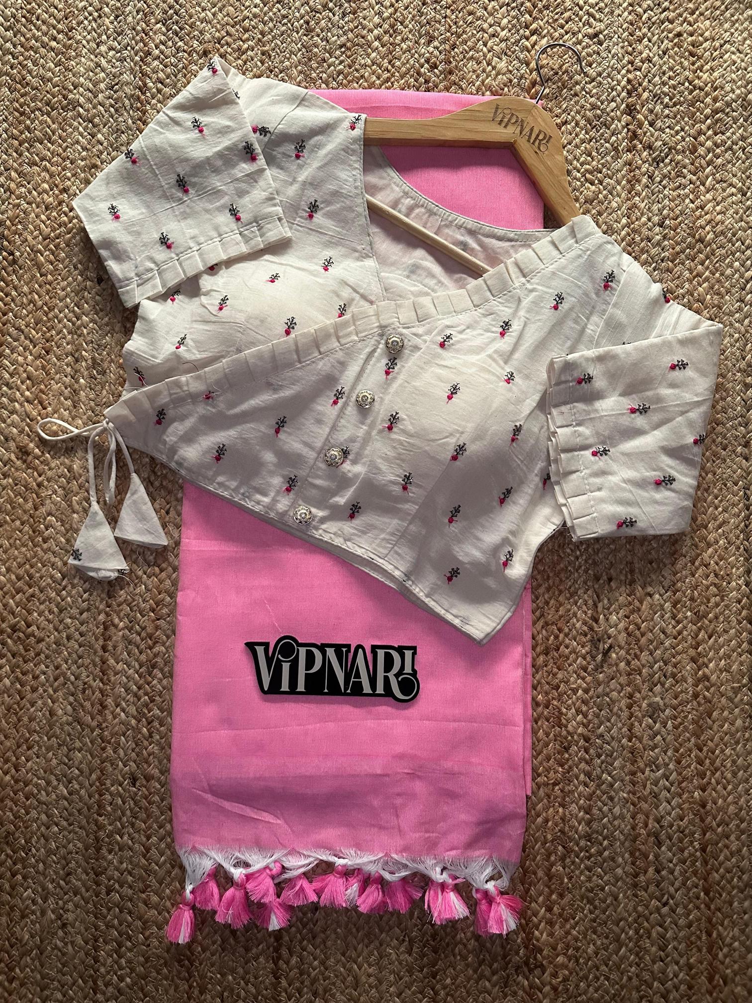 Trending Handloom Cotton Saree With Stitched Designer Handwork Blouse