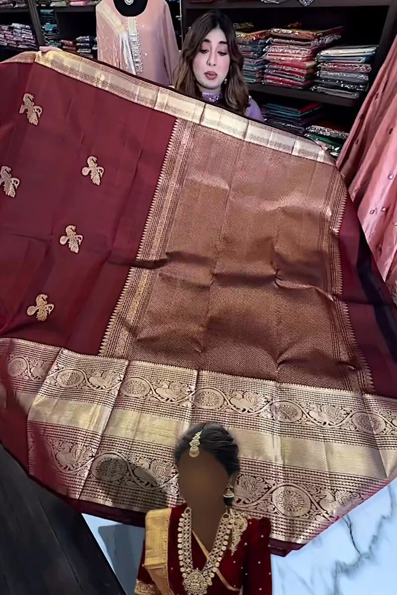 Most Trending Viral Viscose Silk Dark Coffee Saree With Weaving Zari Border
